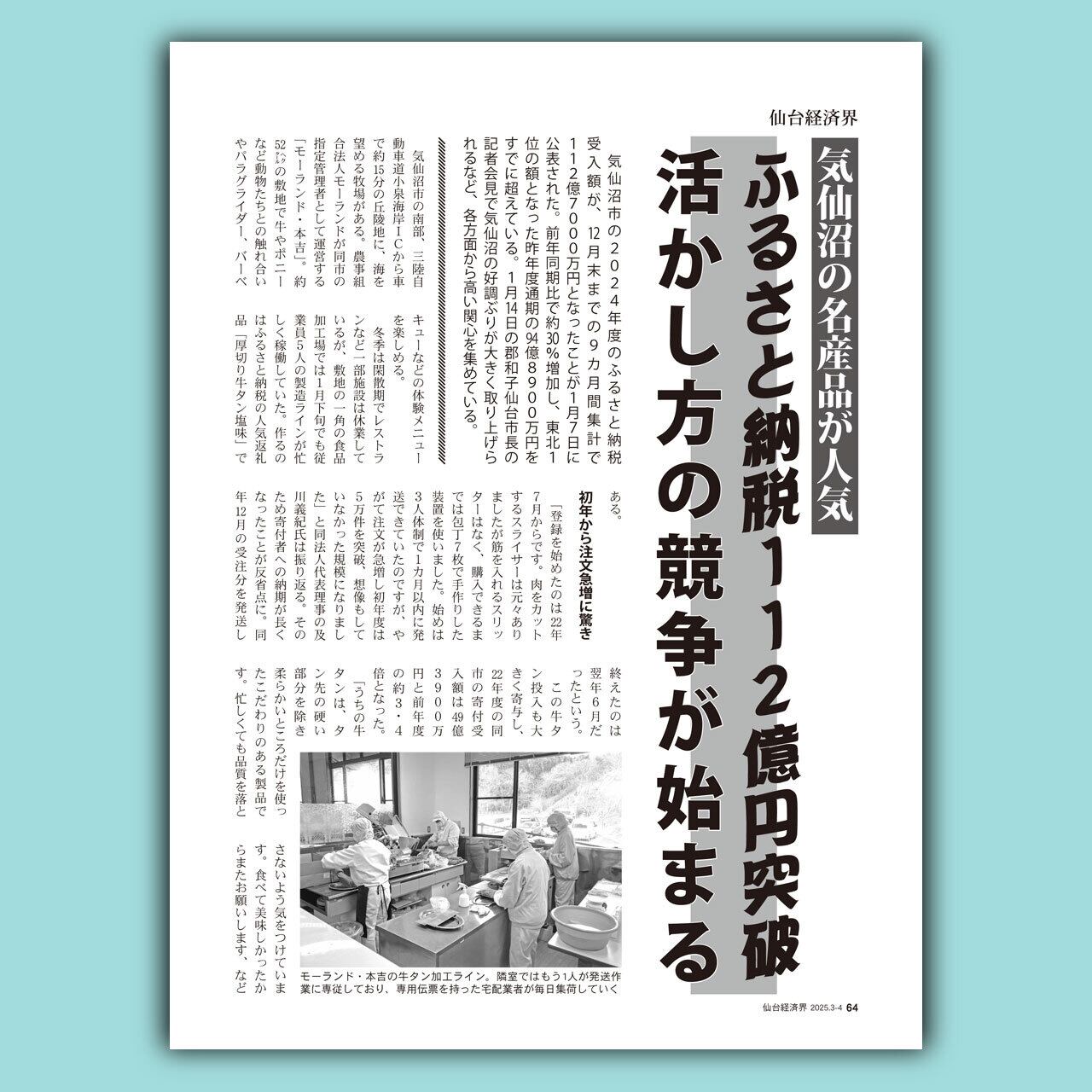 気仙沼市の2024年度のふるさと納税受入額が、12月末までの9カ月間集計で112億7000万円となったことが1月7日に公表された。前年同期比で約30%増加し、東北1位の額となった昨年度通期の94億8900万円をすでに超えている。1月14日の郡和子仙台市長の記者会見で気仙沼の好調ぶりが大きく取り上げられるなど、各方面から高い関心を集めている。