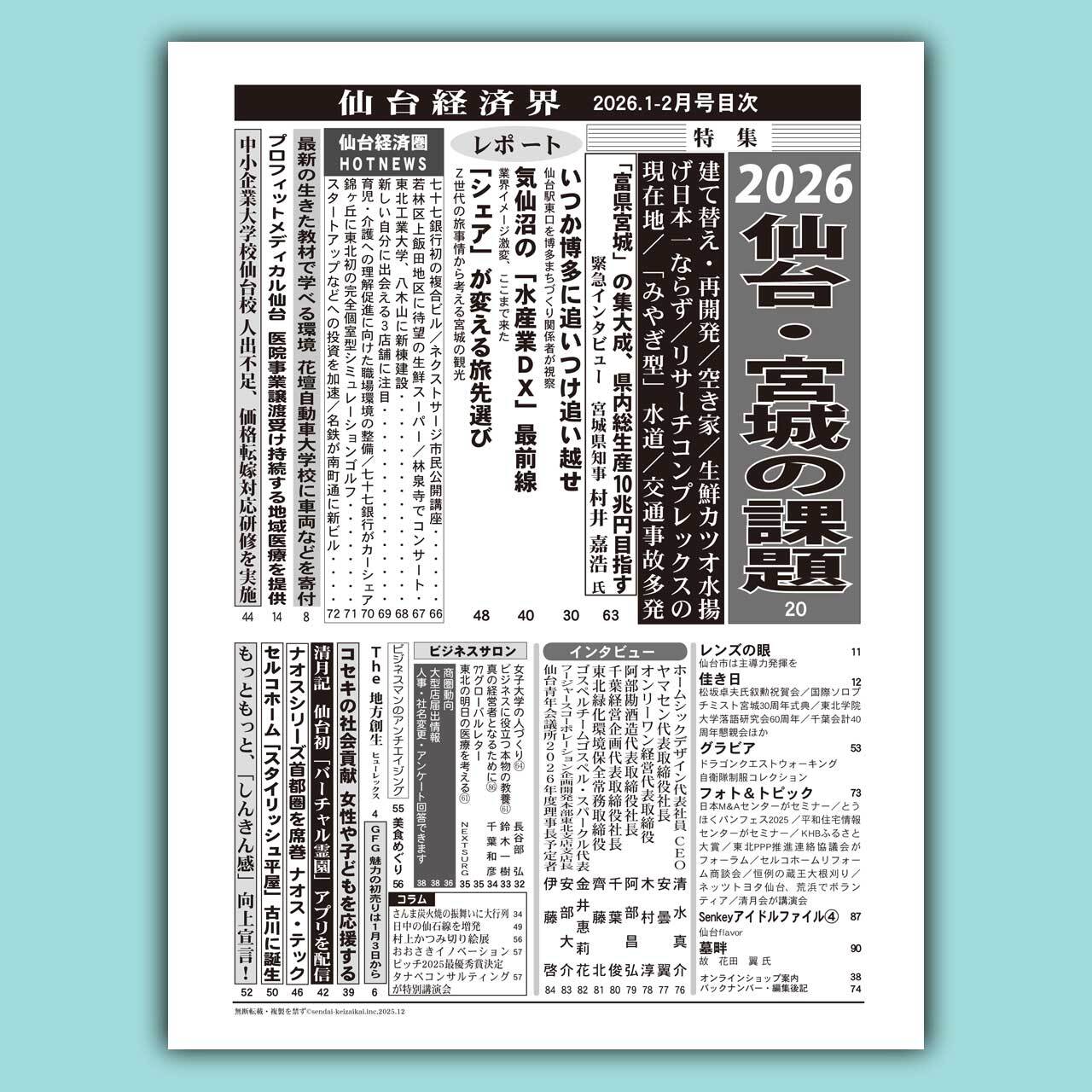 都心は再構築以前に解体が進まない。住宅地では放置空き家が増え、環境瑕疵が社会問題に。新年号特集「宮城の課題」も3回目になった。課題解決の模索は続き、そんな中で新たな課題が見え隠れする。県政史上初の6期目を迎えた村井嘉浩知事は集大成として、荒波に挑む。