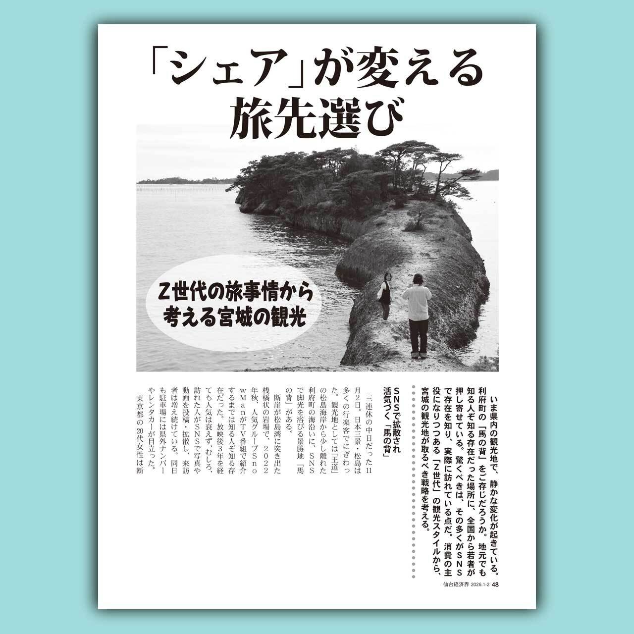 いま県内の観光地で、静かな変化が起きている。利府町の「馬の背」をご存じだろうか。地元でも知る人ぞ知る存在だった場所に、全国から若者が押し寄せている。驚くべきは、その多くがSNSで存在を知り、実際に訪れている点だ。消費の主役になりつつある「Z世代」の観光スタイルから、宮城の観光地が取るべき戦略を考える。